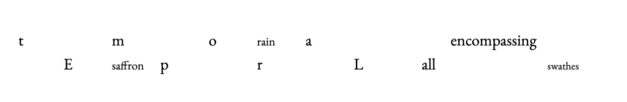 Between us, I find a cluster of stems growing. Can they carry the words from my head as I comprehend them? Water keeps moving in the text. It is in different shapes, splintering, yearning, narrowing like a photograph, splashing on a blank page. Sometimes words are part of a form that cannot be shared. Fragile visuals appear, but I cannot translate them to language. When we are young, we communicate through instincts and gestures, haptic and aural tendencies. Underwater, I enjoy the silence till my chest pounds and trembles, forcing me to come up for breath.
